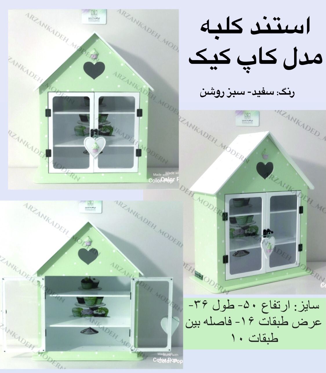 شلف رومیزی ادویه کلبه فانتزی مدل کاپ کیک ساخته شده. از چوب ام دی اف 6 میلی متری مرغوب .و رنگ صنعتی با کیفیت براق و کاملا قابل شست شو میباشد.و عدم استفاده از رنگ اکریلیک .و استفاده از رنگ های صنعتی موجب امتیاز این شلف ( استند) مدل کاپ کیک)نسبت به محصولات مشابه شده است.